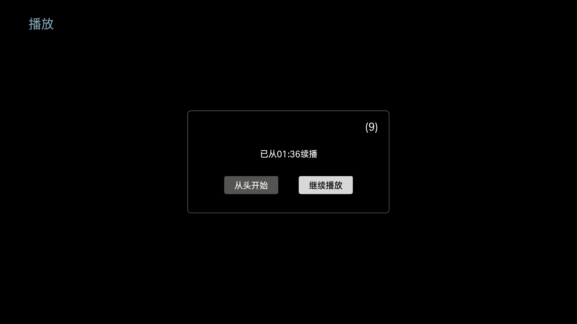 3、打开影片观看一段时间后退出影片,再次进入后会有提示框并且影片会继续播放上一次看到的位置,可选择从头开始或者继续播放