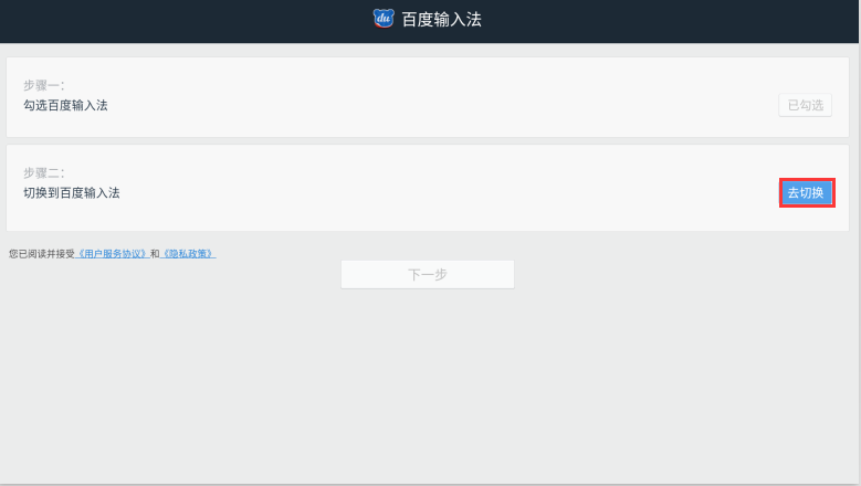 四:勾选完成之后,切换到百度输入法,点击 "去切换"