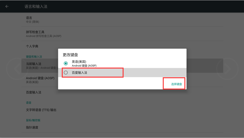 六:在新的页面,选中"当前输入法" , 更改键盘栏,选中"百度输入法",点击"选择键盘"