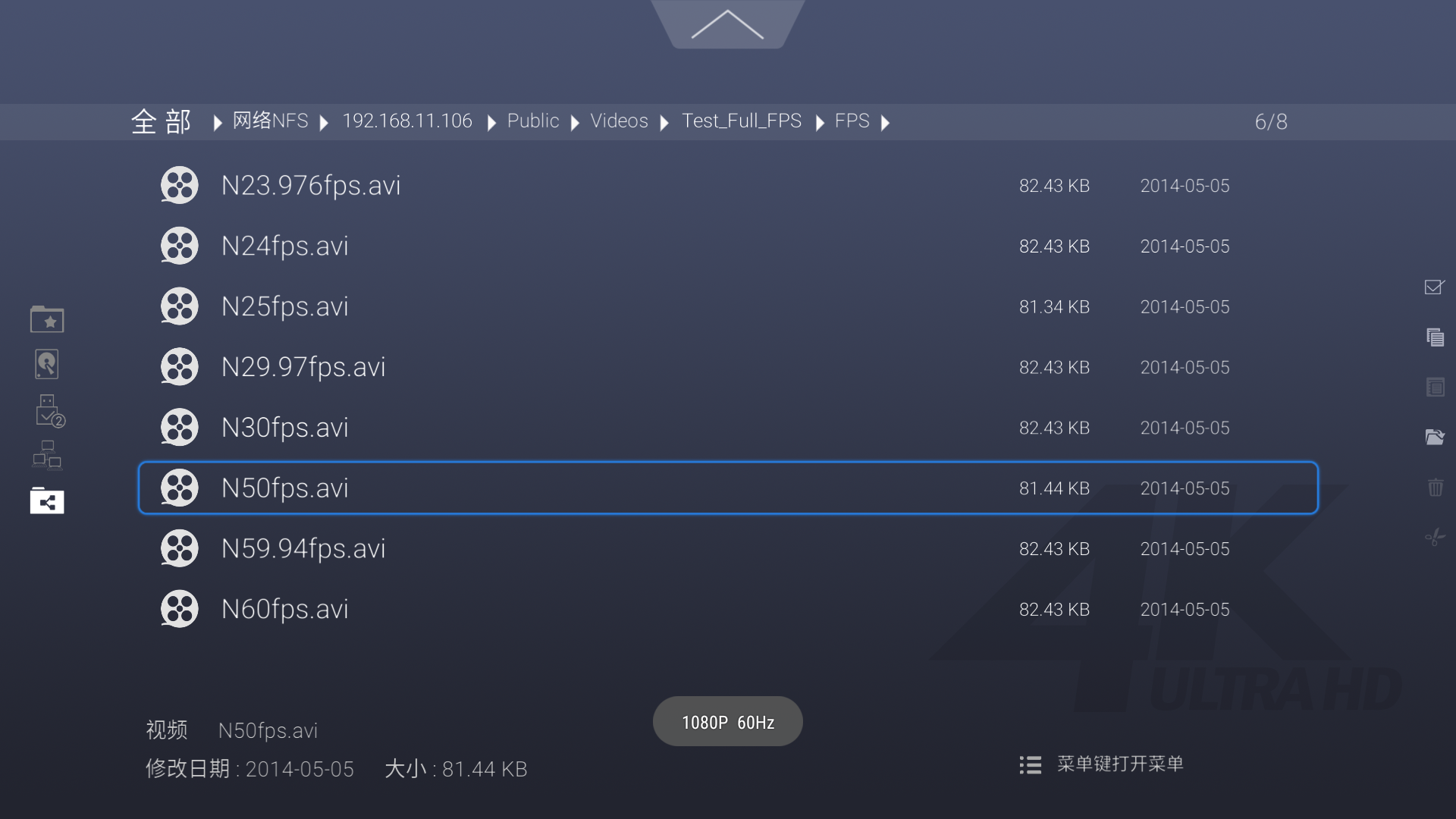 5、打开一部帧率为50hz的电影,左上角显示为1080P 50Hz