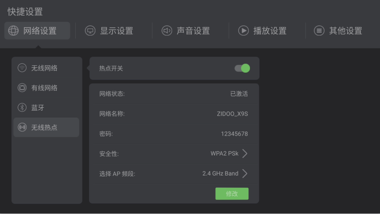 三:如果需要修改私有网络名称(SSID),请点击"修改",编辑网络名称及密码