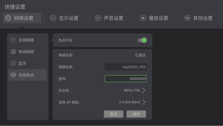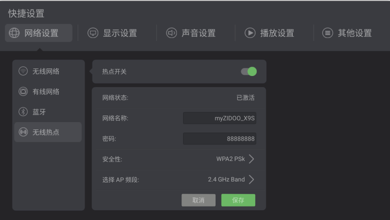 二:打开:热点开关(已含有默认热点名字及密码,其他设备直接连接即可)