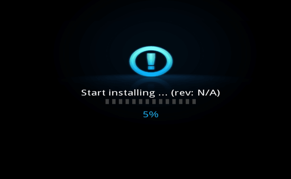 五:如果在刷机的时候接了电视,会出现刷机过程 (注意:如果屏幕没有显示或出现绿屏等,属于正常现象,请勿此时断电,ps:如果U盘有指示灯,指示灯闪烁表示正在刷机,请耐心等待10分钟,即可恢复)