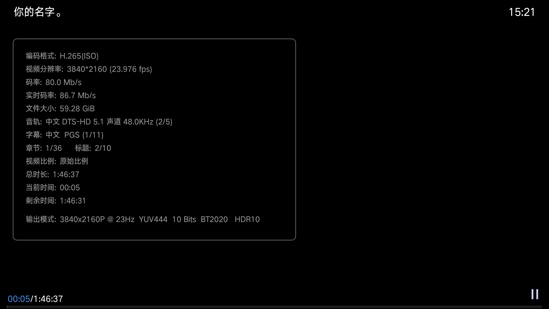 例如:分辨率设置4K 60hz,播放1080P 23.976Hz的片源,播放器输出1080P 23.976Hz